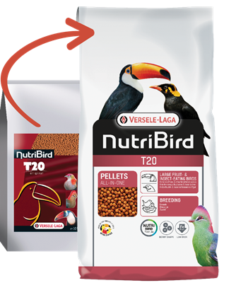 NutriBird T20 je granulované krmivo pro ovocožravé ptactvov době chovné sezóny nebo při odchovu mláďat. Má větší podíl ovoce. Podporuje střevní flóru a chrání proti střevním onemocnění. Obsahuje malý podíl železa (max. 85 ppm).